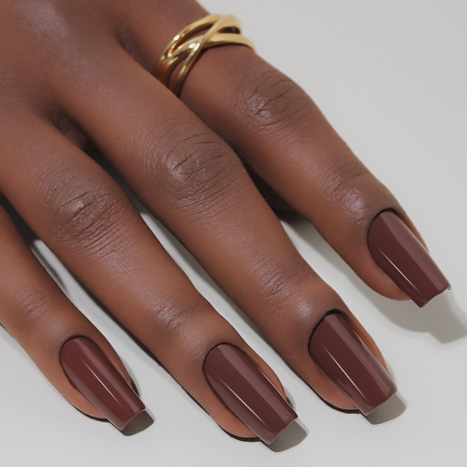 A deep, chocolatey brown, Hershey Kiss is a shade good enough to eat. Pair with a gold glitter for the ultimate luxe look
