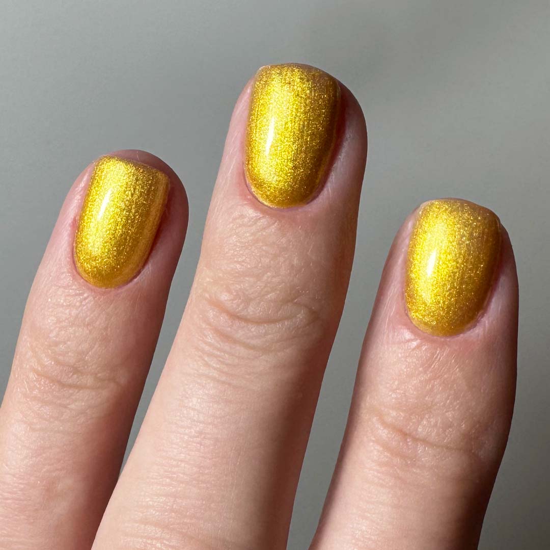 Radiant, bold, and full of warmth — Golden Hour captures the glow of late-afternoon sunlight in a bottle. This rich metallic yellow-gold shimmers with micro-reflective particles that bring depth and luminosity to every set. Perfect for statement looks, summer nails, or adding a touch of luxury to your designs.