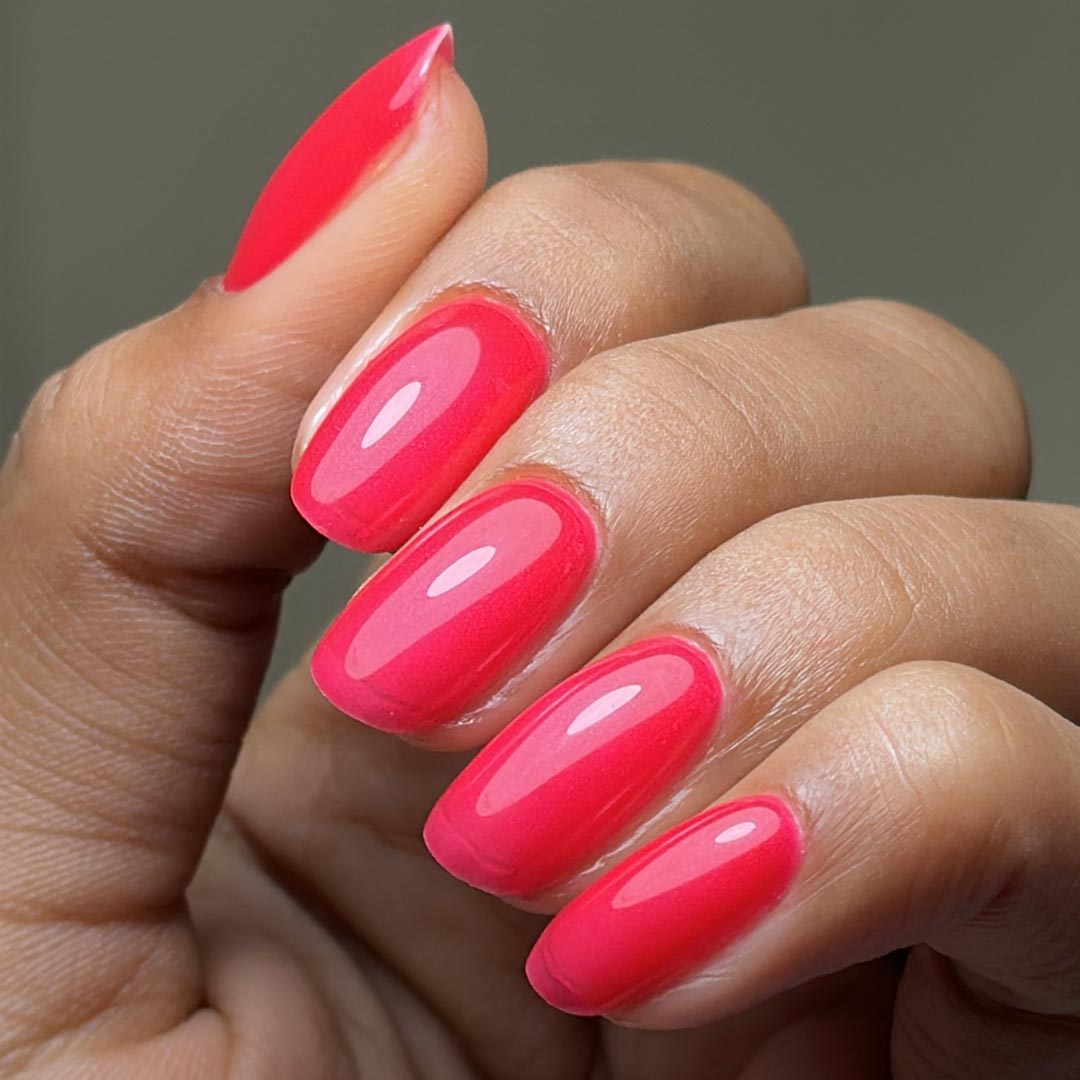 Juiced - A bold, punchy pink with a semi-sheer and delicate pearl finish, Juiced is made for jelly nails and high-shine layering. Wear it alone for a fresh, juicy look or layer it over other shades to build depth and dimension.