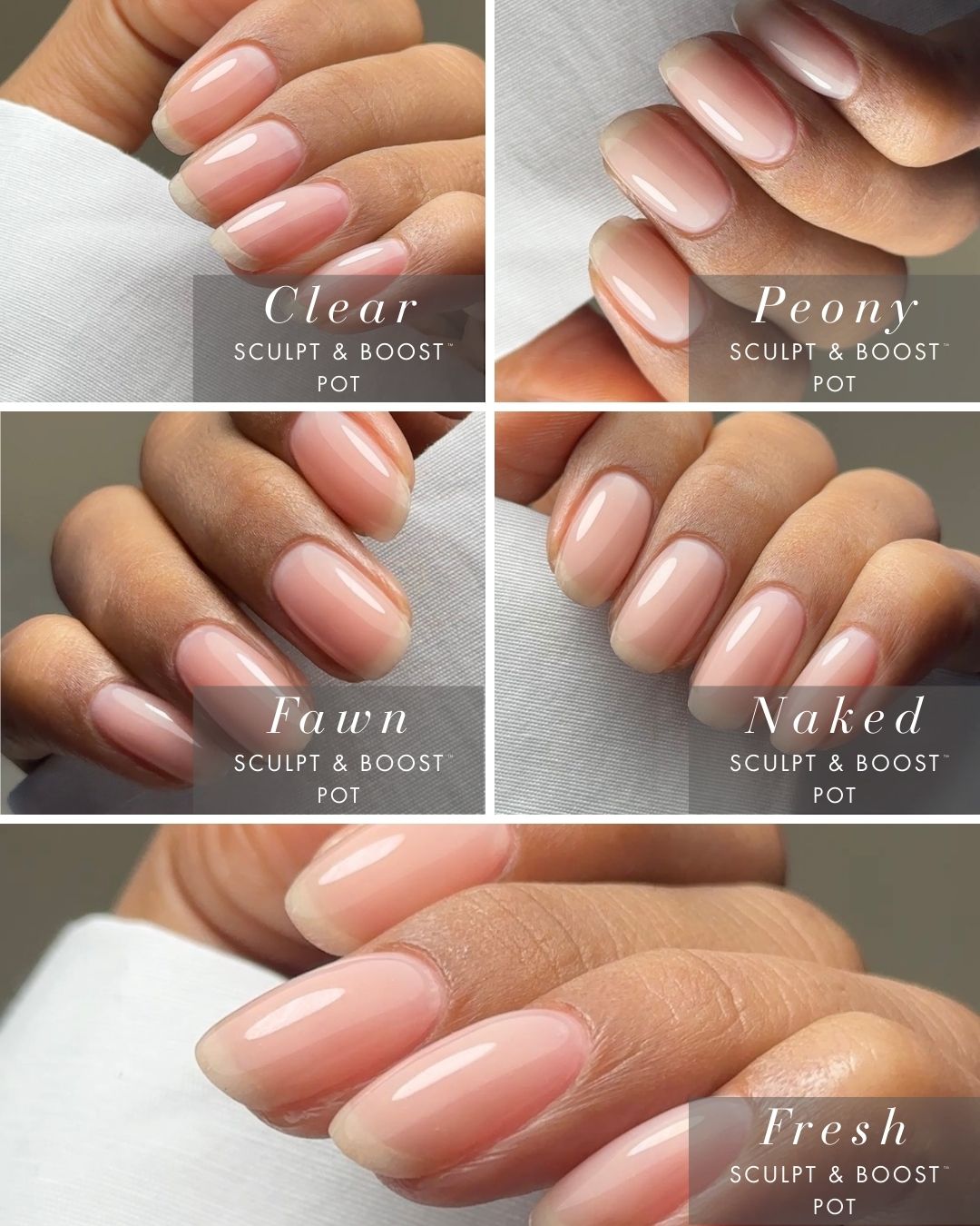 Please note: Because of the differing base formulas and viscosities of SCULPT & BOOST, BUILD & BOOST and our gel colour, Naked may appear slightly different in shade when compared side by side.