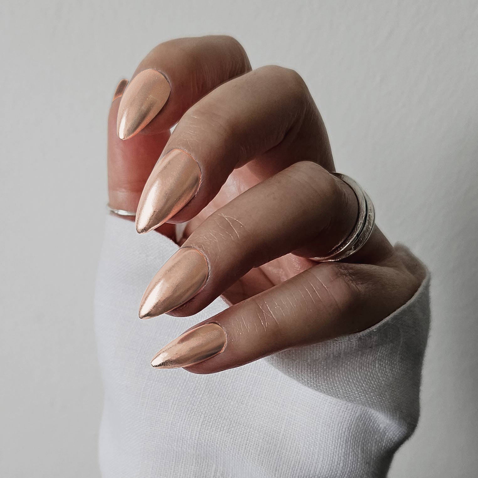 Belle is a pale rose gold mirror chrome that is the essence of glamour and the height of sophistication.