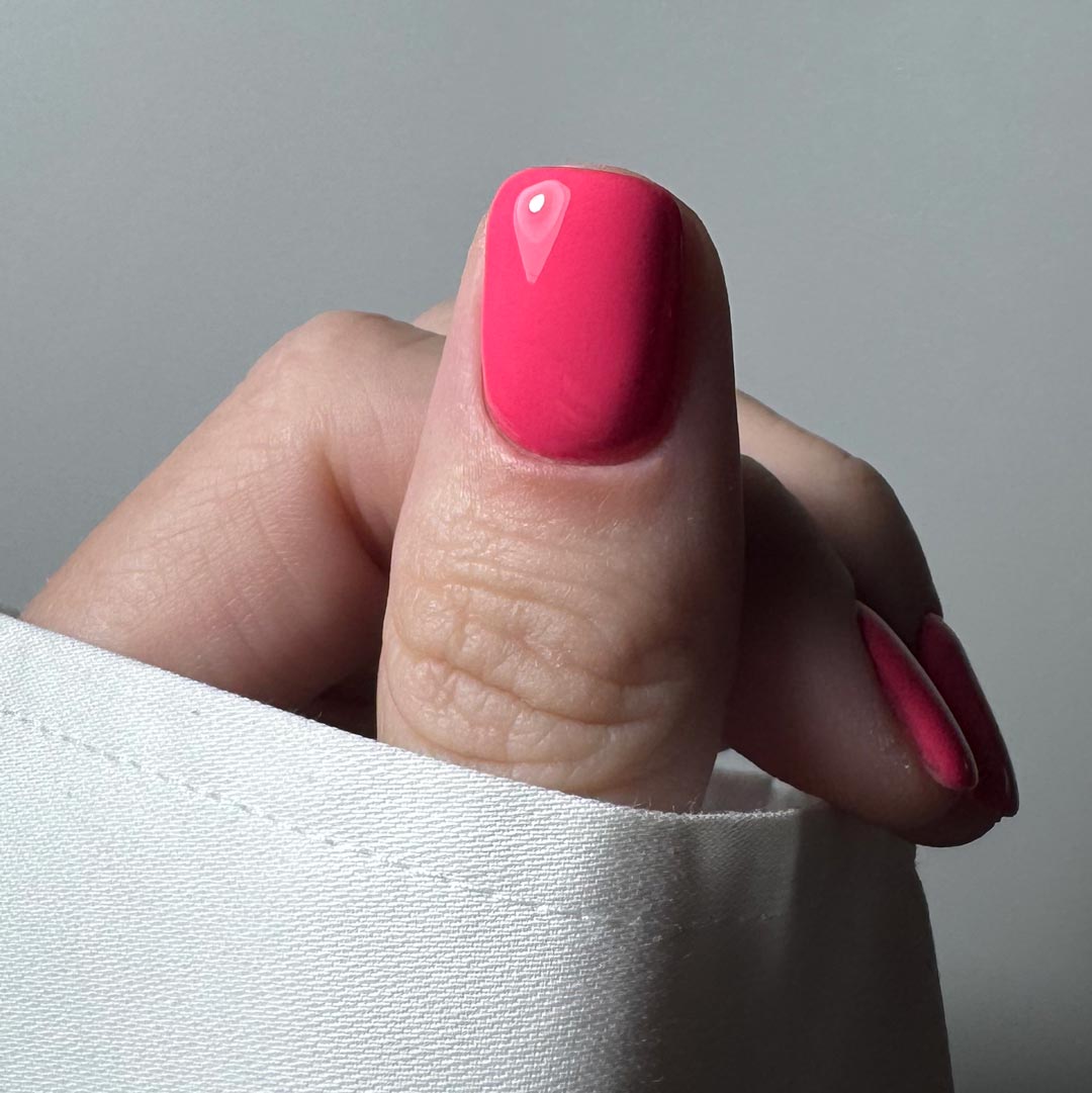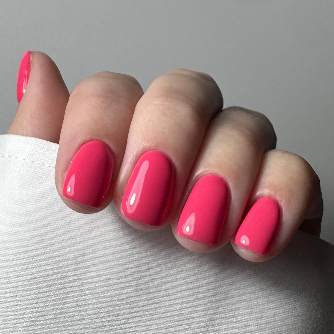 Crush – a bold, juicy pink bursting with energy and personality. This vibrant shade is the ultimate showstopper – playful yet powerful, it instantly uplifts any set. Whether you’re creating a striking full-colour look or pairing it with nail art for a pop of brightness, Crush is the perfect pick for those who love their nails to do the talking.