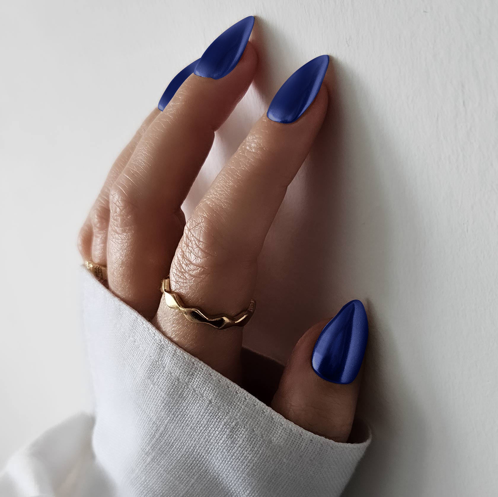 A futuristic electric blue chrome. Burnish on top gel colour shade 'Ink' for an exquisite, head-turning look.