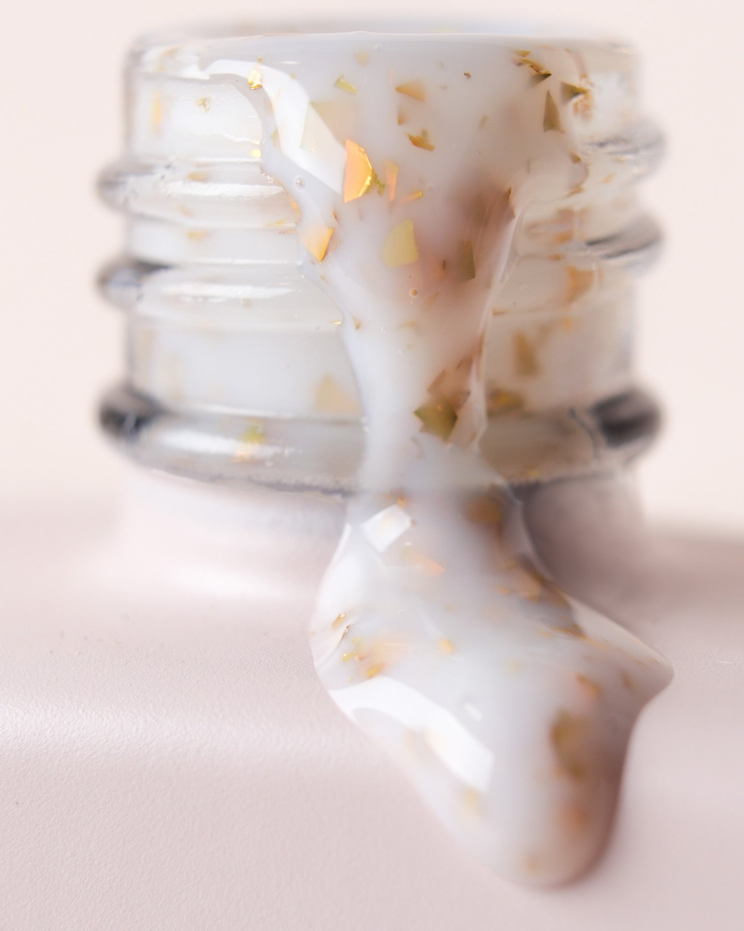 Gilded is a subtle milky white with delicate flecks of gold leaf. Ideal for wedding season be it guest or bridal party, this shade is pure elegance - bottled.