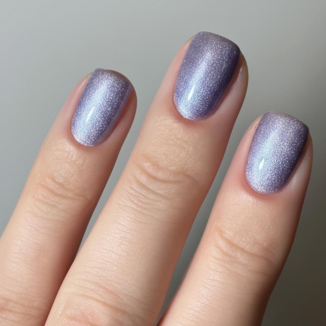 A captivating blue-purple toned cat eye gel that shifts and shimmers like the ocean. This magnetic shade creates a mesmerising, multi-dimensional effect that moves with the light.
