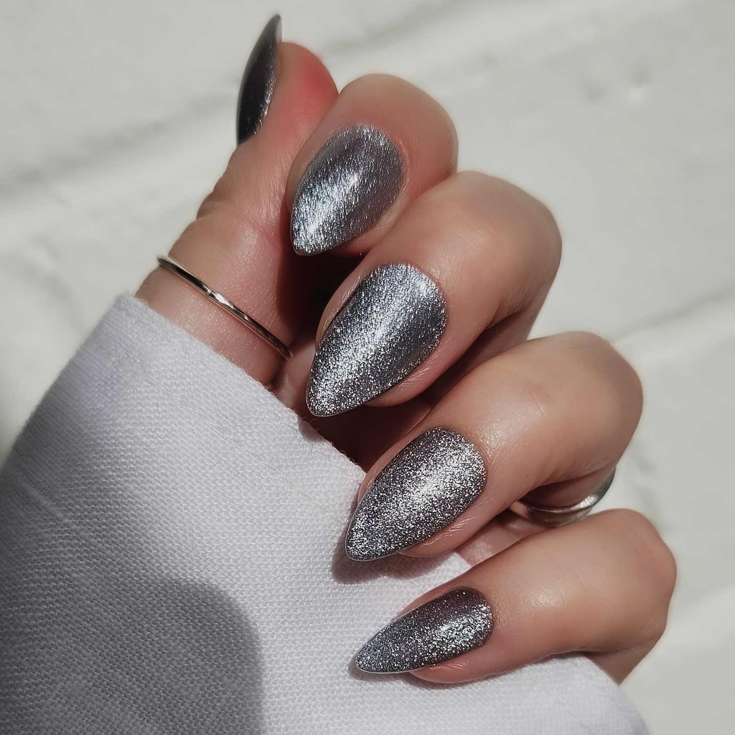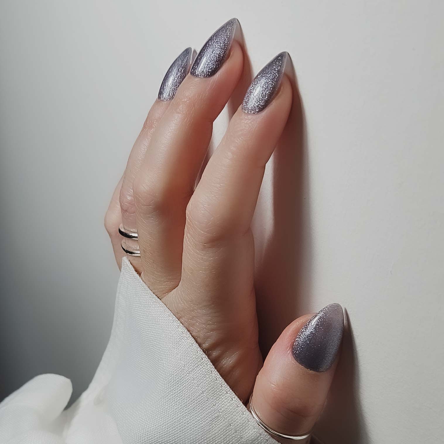 • Cat eye gel requires magnet to move pigment around the nail to create captivating, shimmering designs before curing
