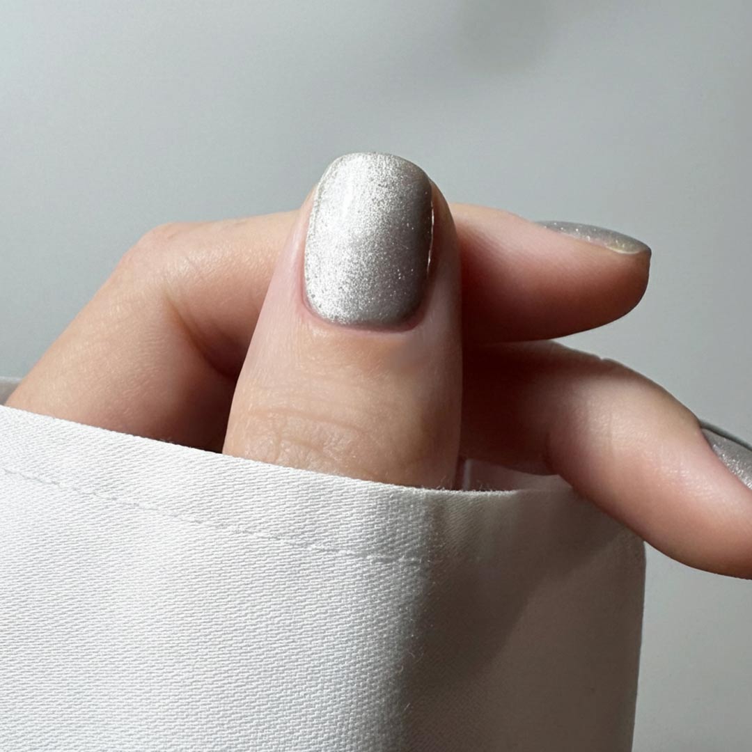 The ultimate silver staple for every nail tech’s kit. This versatile cat eye gel delivers a sleek, metallic shimmer that pairs effortlessly with any set.