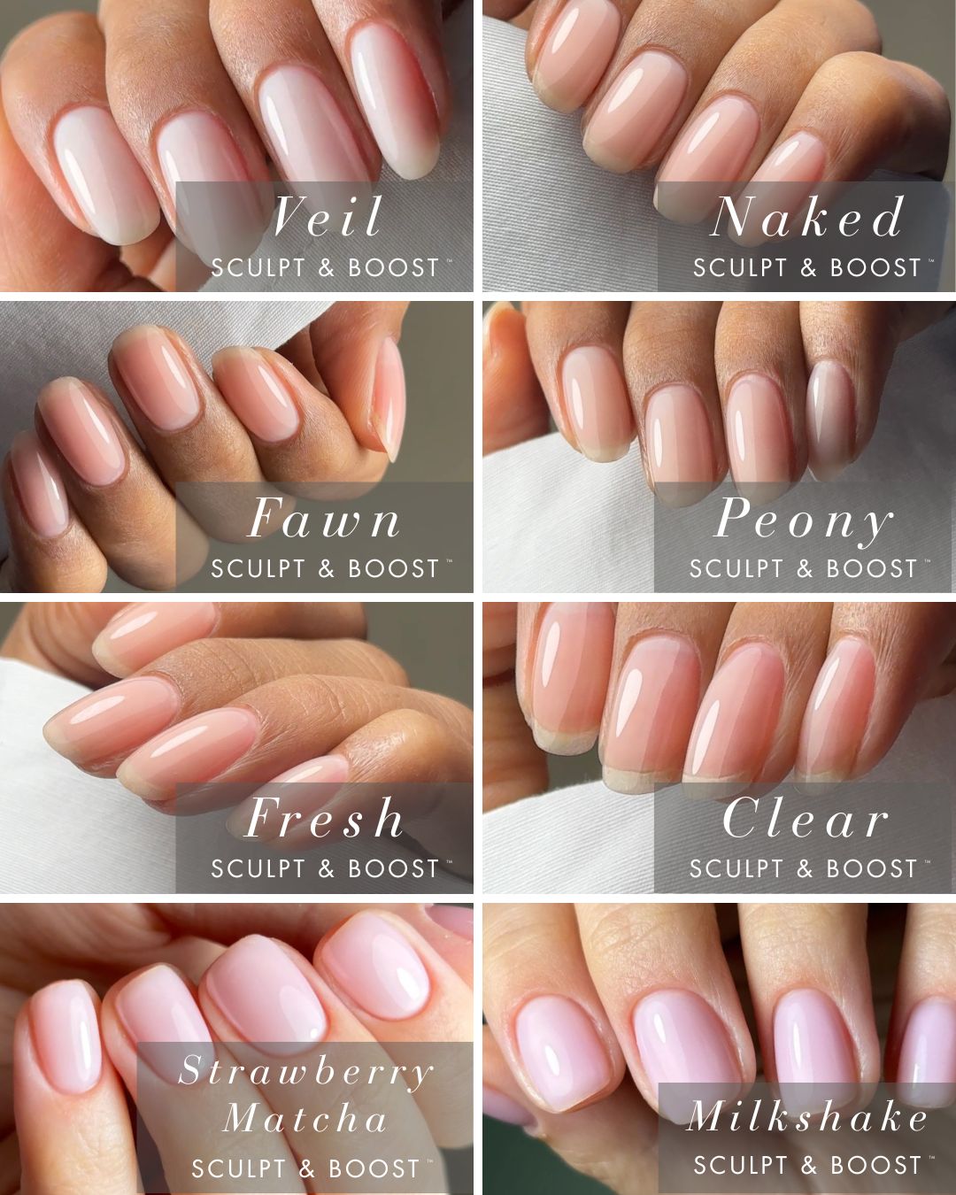 Please note: Because of the differing base formulas and viscosities of SCULPT & BOOST, BUILD & BOOST and our gel colour, Naked may appear slightly different in shade when compared side by side.