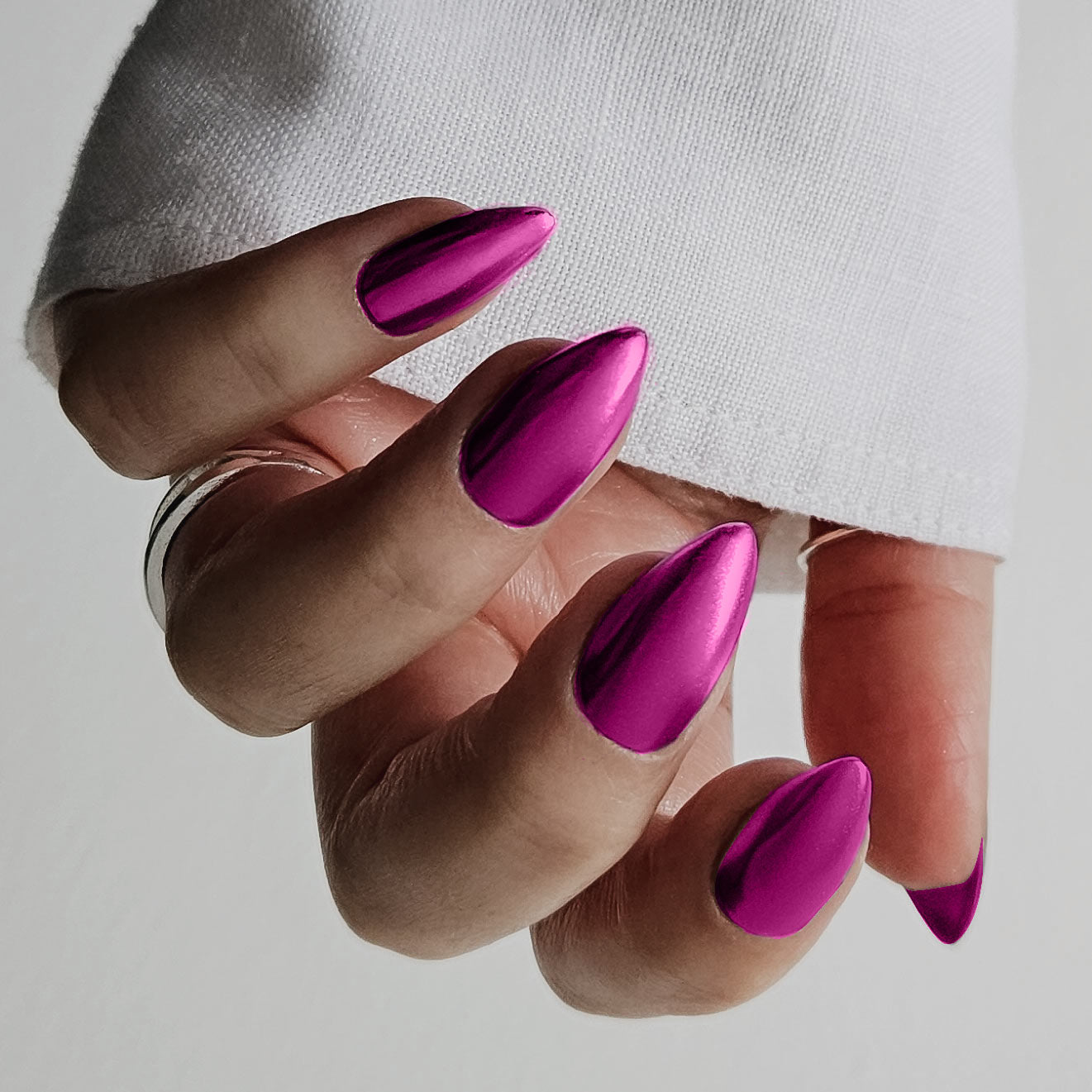 A metallic magenta chrome that will open the imagination. Burnish on top of Muted Magenta for a punchy and adventurous pink look