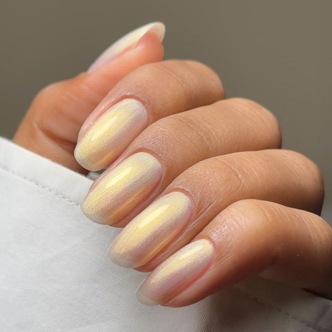 Whisper – A luminous cream pearlescent shade with delicate hints of gold, creating a truly captivating glow. Soft and elegant, this shade subtly shimmers in the light, adding a touch of warmth and radiance to any manicure. Perfect for those seeking an understated yet luxurious finish, Whisper is the ultimate blend of sophistication and subtle sparkle.
